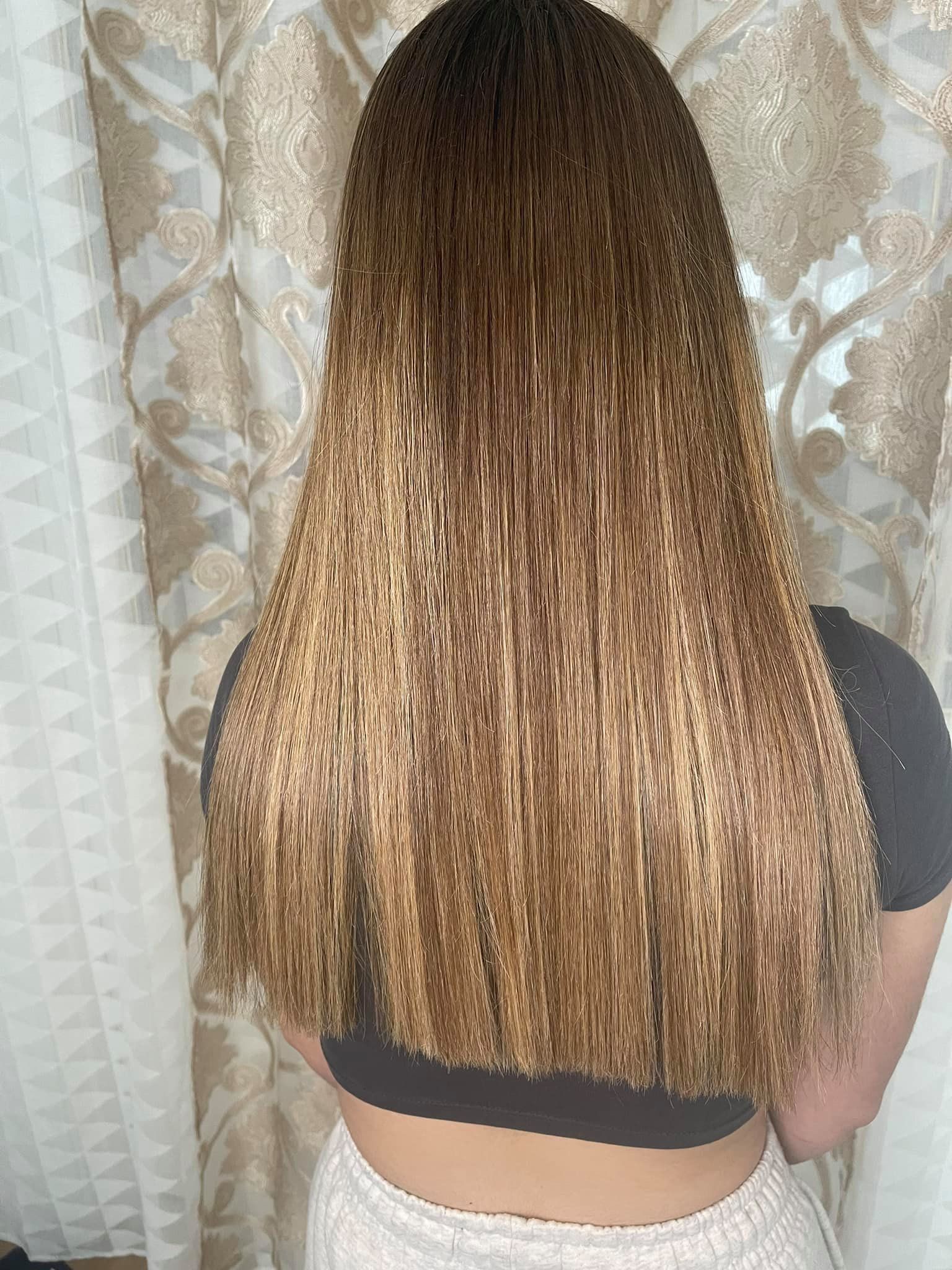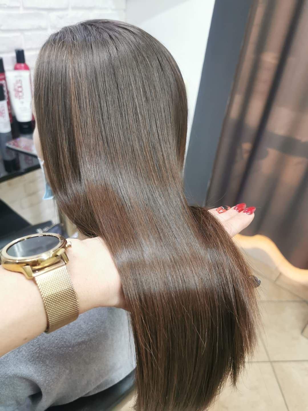 Remember to take very tiny (2 cm wide) sections at a time and fully cover each strand with the product in the treatment.